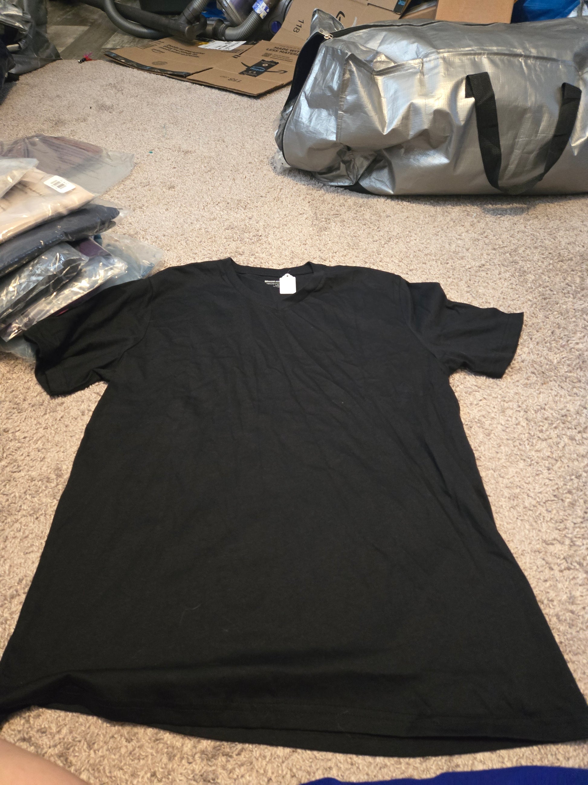 Introducing your new essential: the Amazon Essentials Black Short Sleeve Shirt. This slim-fit shirt features a classic black design and is perfect for men on the go. Plus, it's machine washable for your convenience. Upgrade your wardrobe with this playful and practical piece.