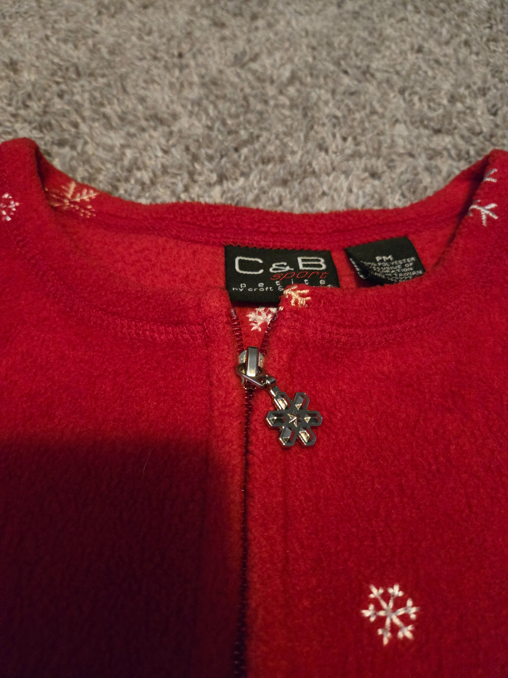 C&B Sport Petite Fleece Zip Up Long Sleeve Red Sweater