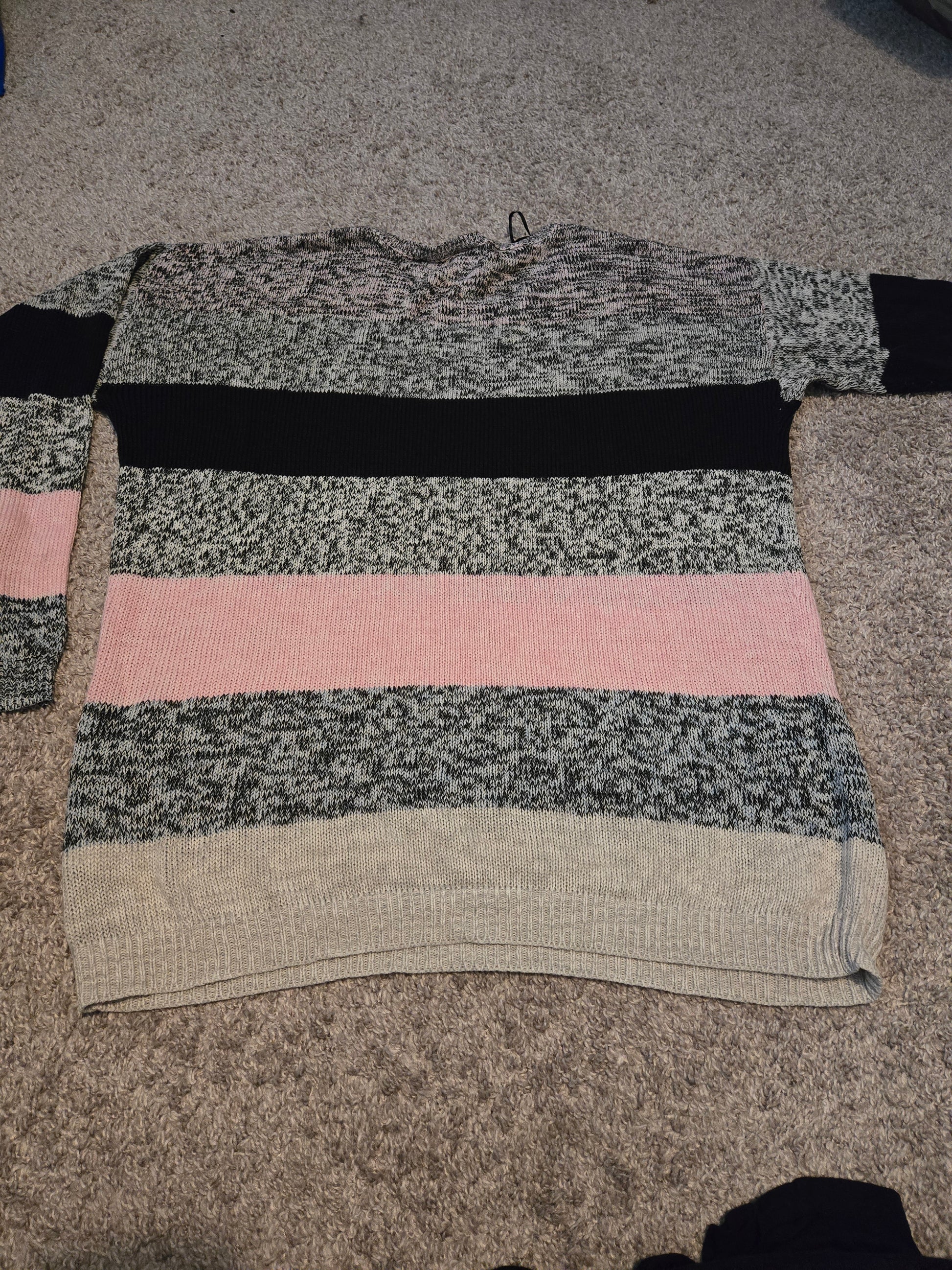 Divided Black, Pink, and Gray Striped Sweater - Gently Used