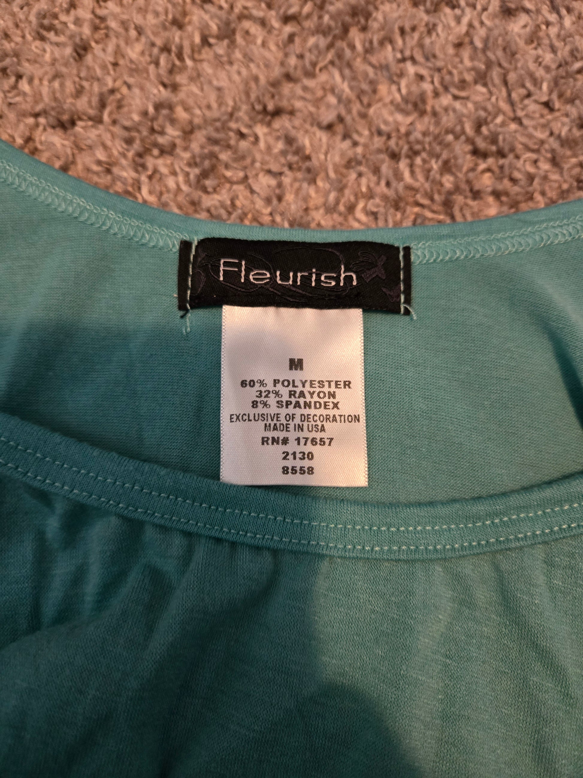 Fleurish Teal Green Short Sleeve Shirt - Gently Used