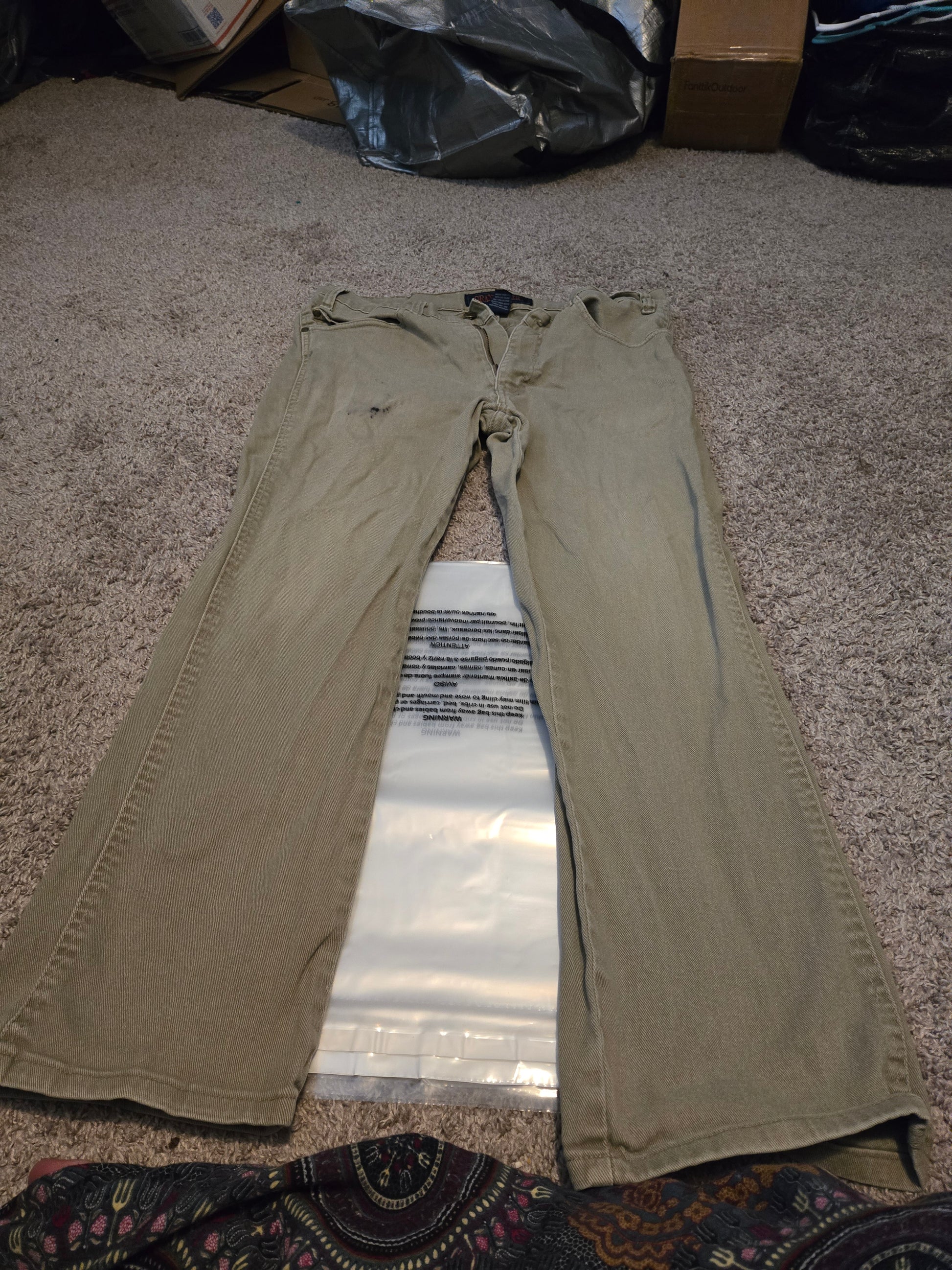 "Get ready to rock that casual look with these Grand River Beige Jeans. Made of a comfortable cotton and spandex blend, they're perfect for everyday wear. Plus, they're gently used so you'll feel like you're getting a steal. With a 35 waist and 30 length, these machine washable jeans are a must-have for any stylish man. Get them before they're gone!"