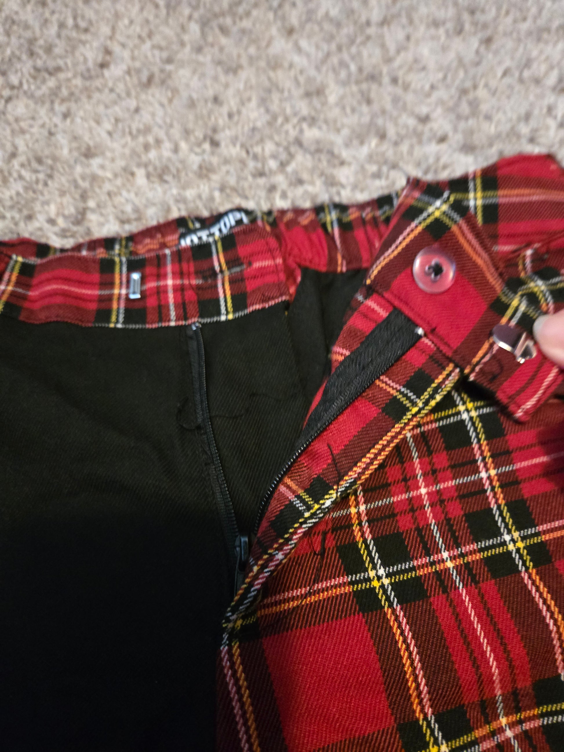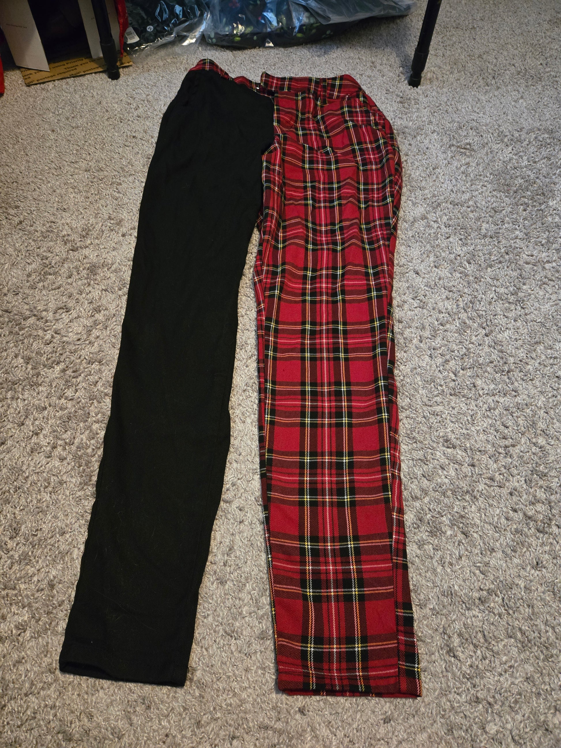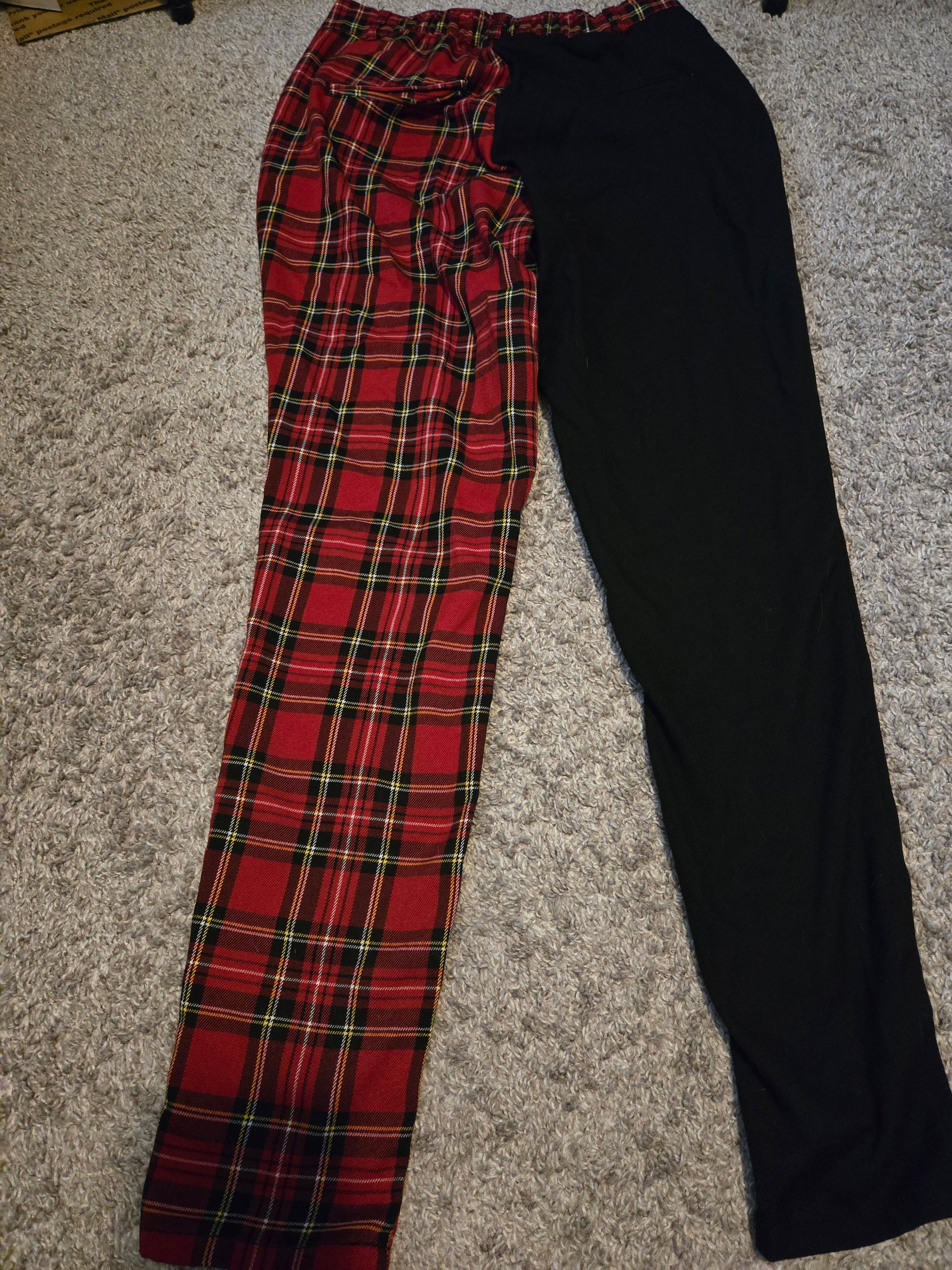 Hot Topic Red Plaid and Black Pants by Hot Topic delivers a stylish and comfortable fit for the modern woman. These trendy pants are perfect for anyone looking to elevate their wardrobe with versatile pieces.