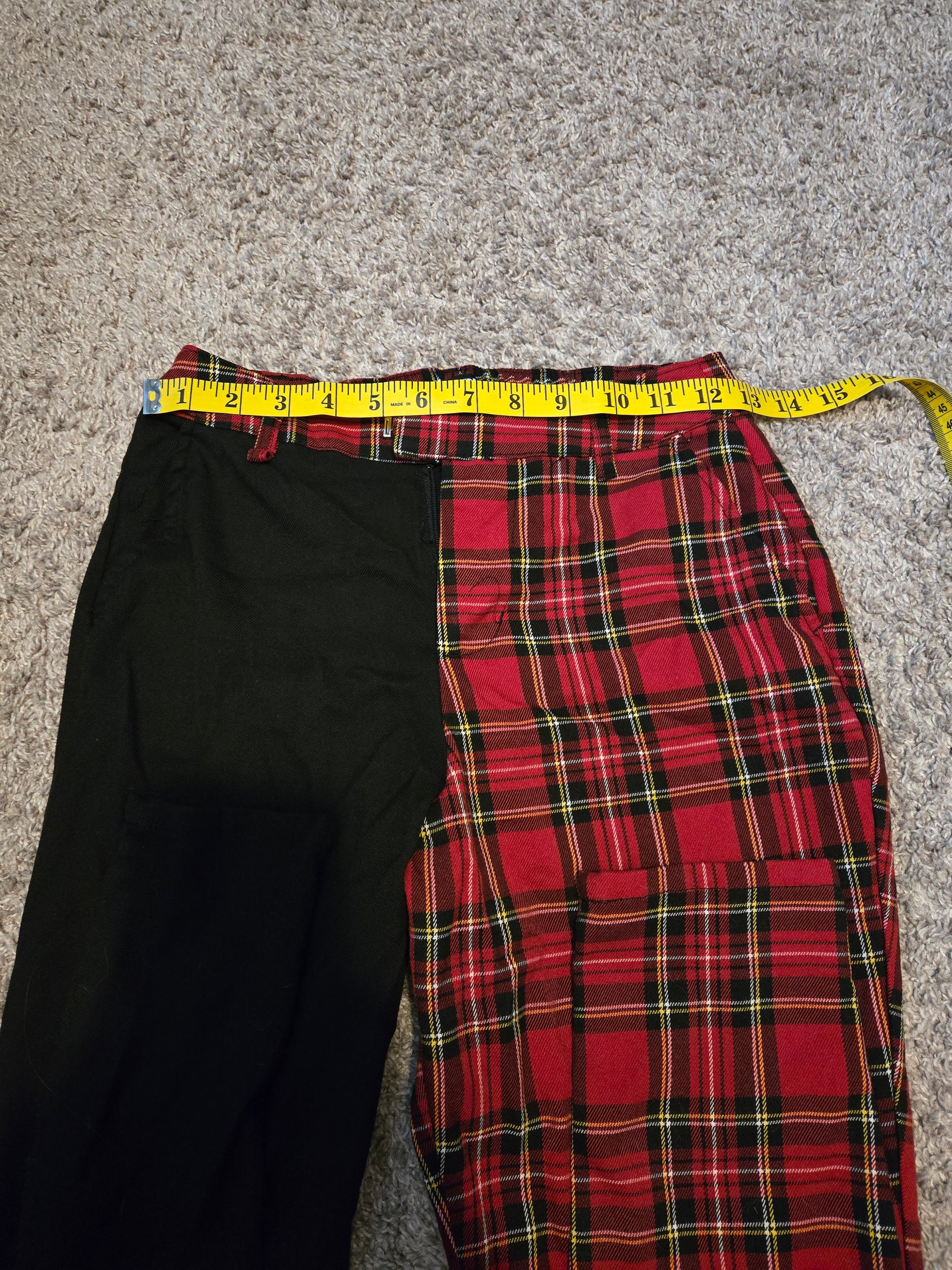 Hot Topic Red Plaid and Black Pants Tapered Legs