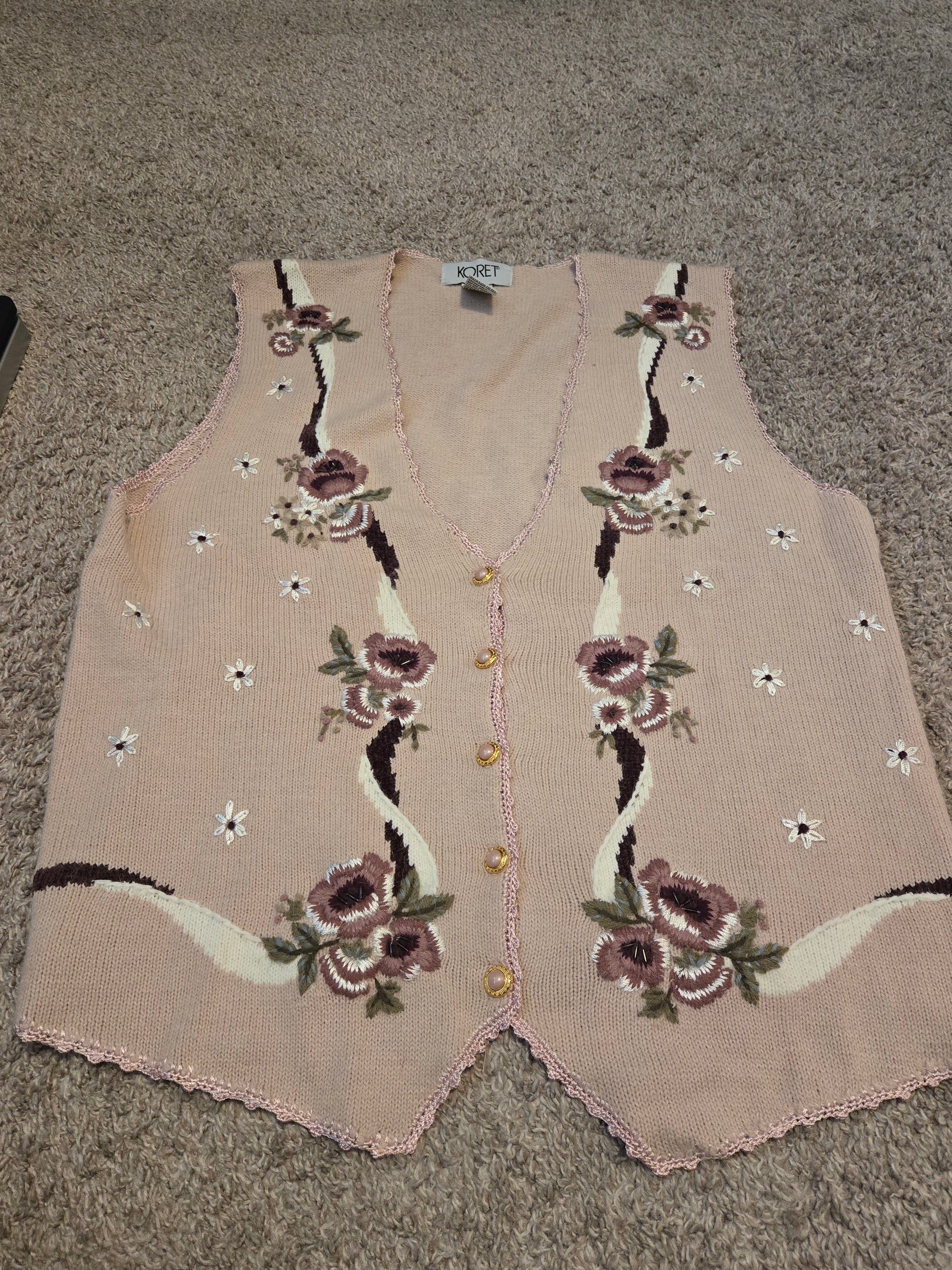 KORET Vest Knit Purple Medium Acrylic Blend With Purple Floral Embroidery