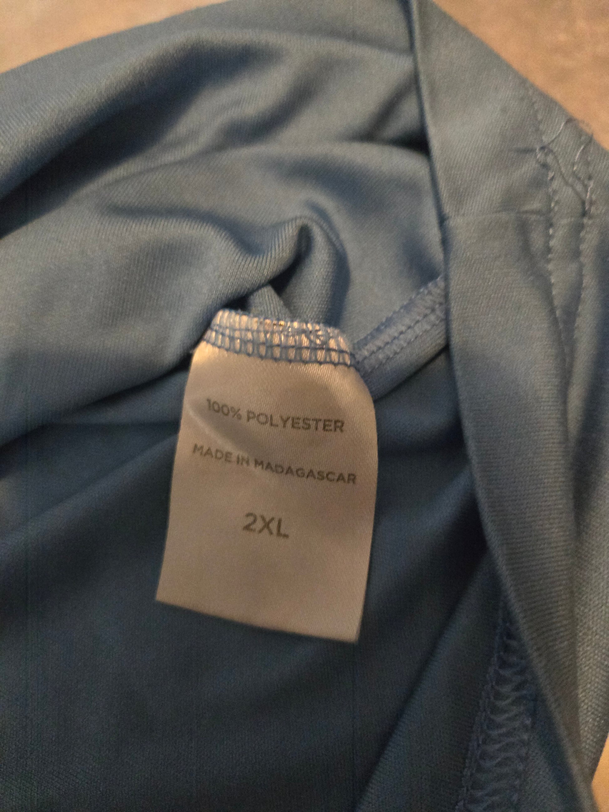 "Step up your polo game with Opna's gently used blue polo TShirt. The 2XL size and durable polyester material make it perfect for men on-the-go. Machine washable for easy maintenance. (Iron not included, because we know you won't bother.)"