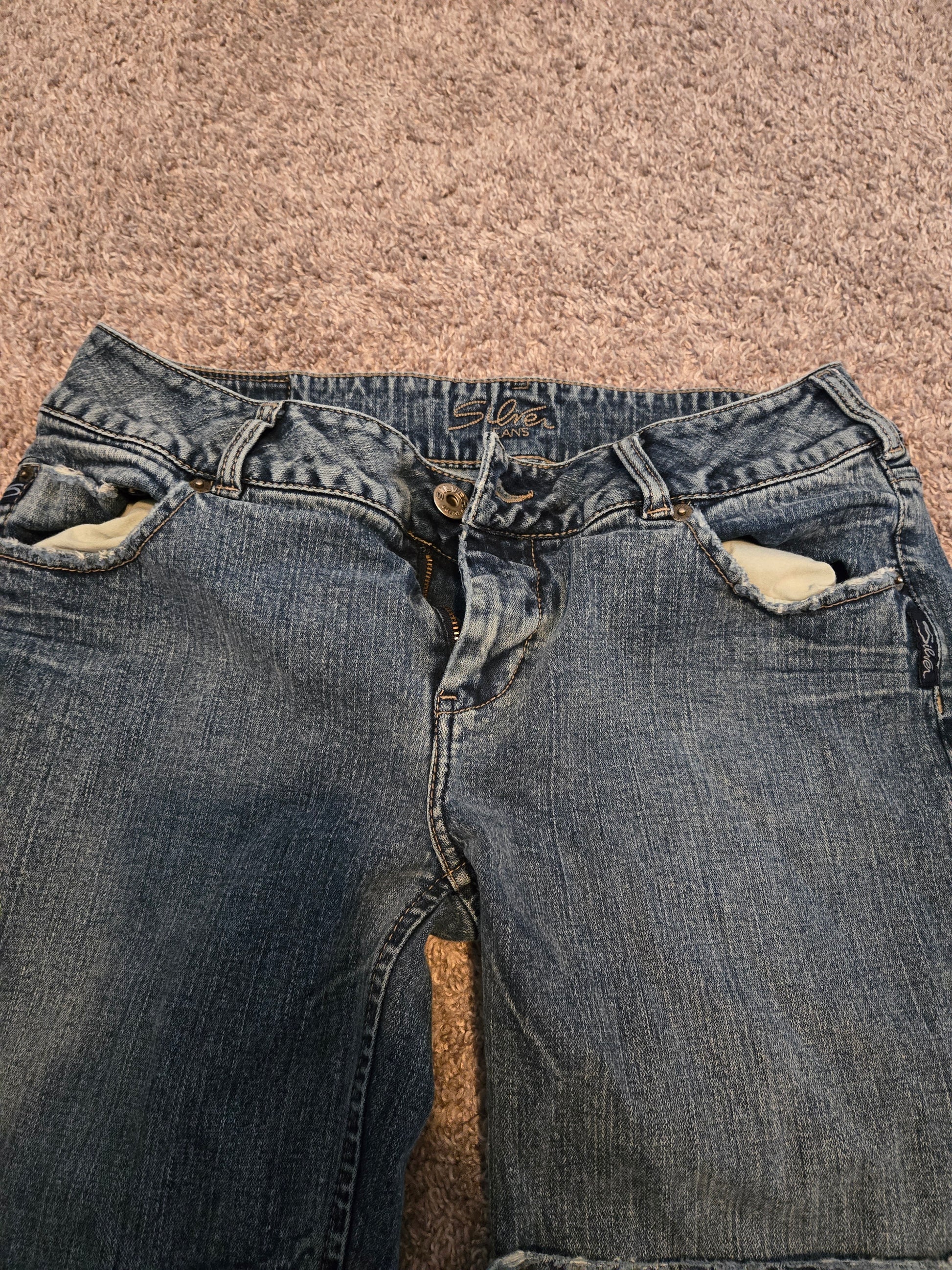 Silver Boot Cut Blue Jeans by Silver delivers a flattering fit and timeless style for the modern woman. These gently used jeans are designed in size 32 and feature a chic boot cut, making them ideal for both casual outings and dressier occasions.