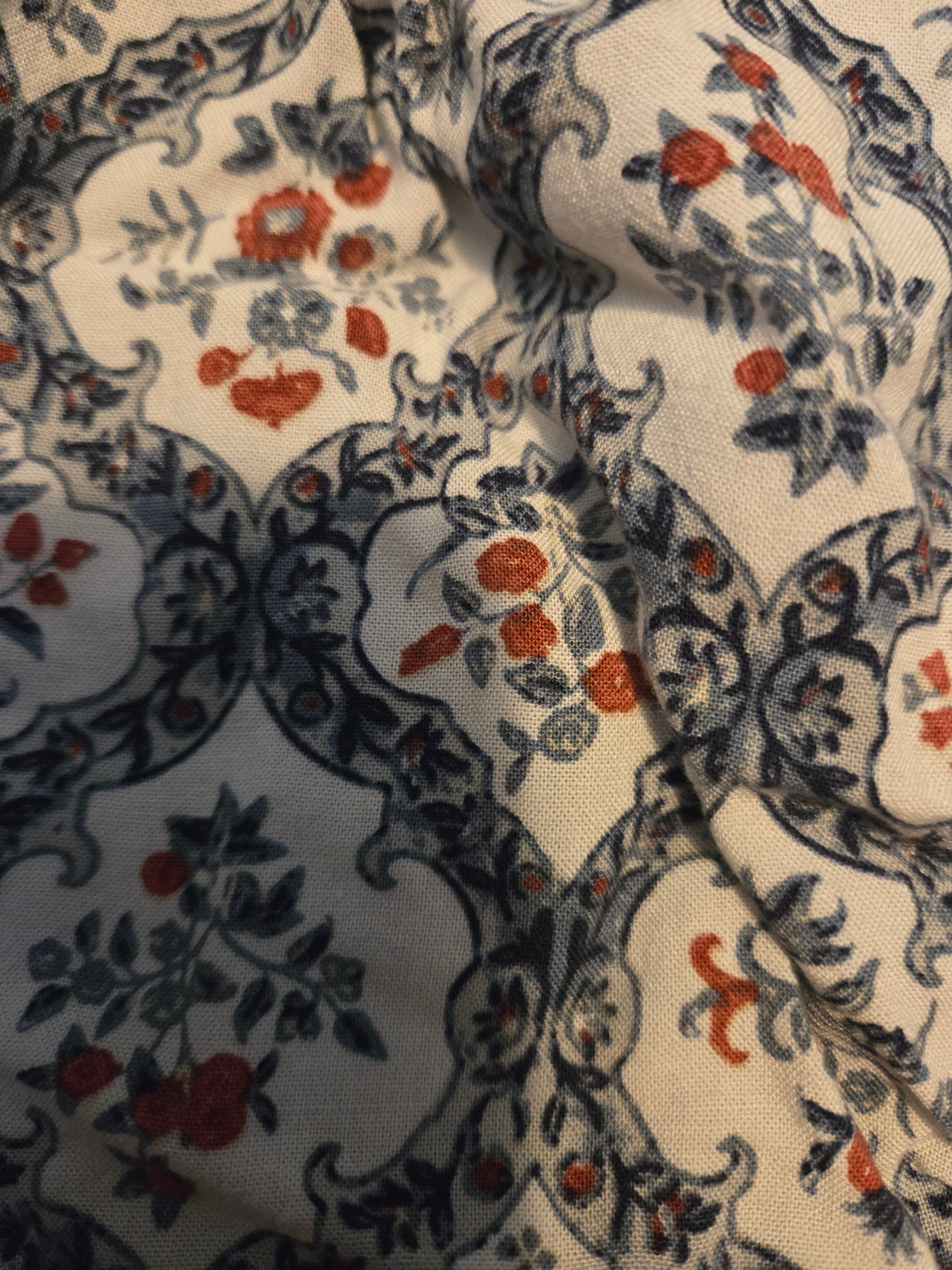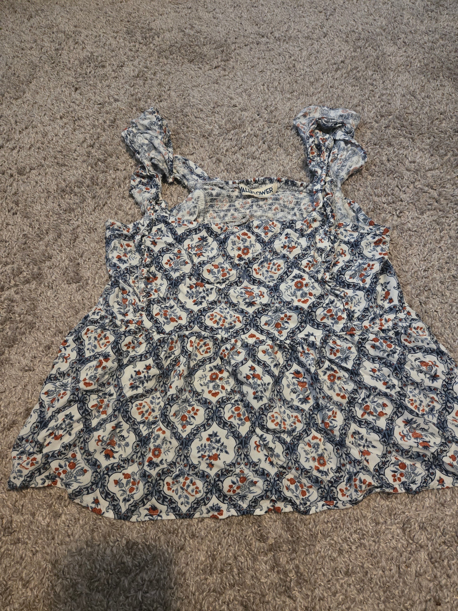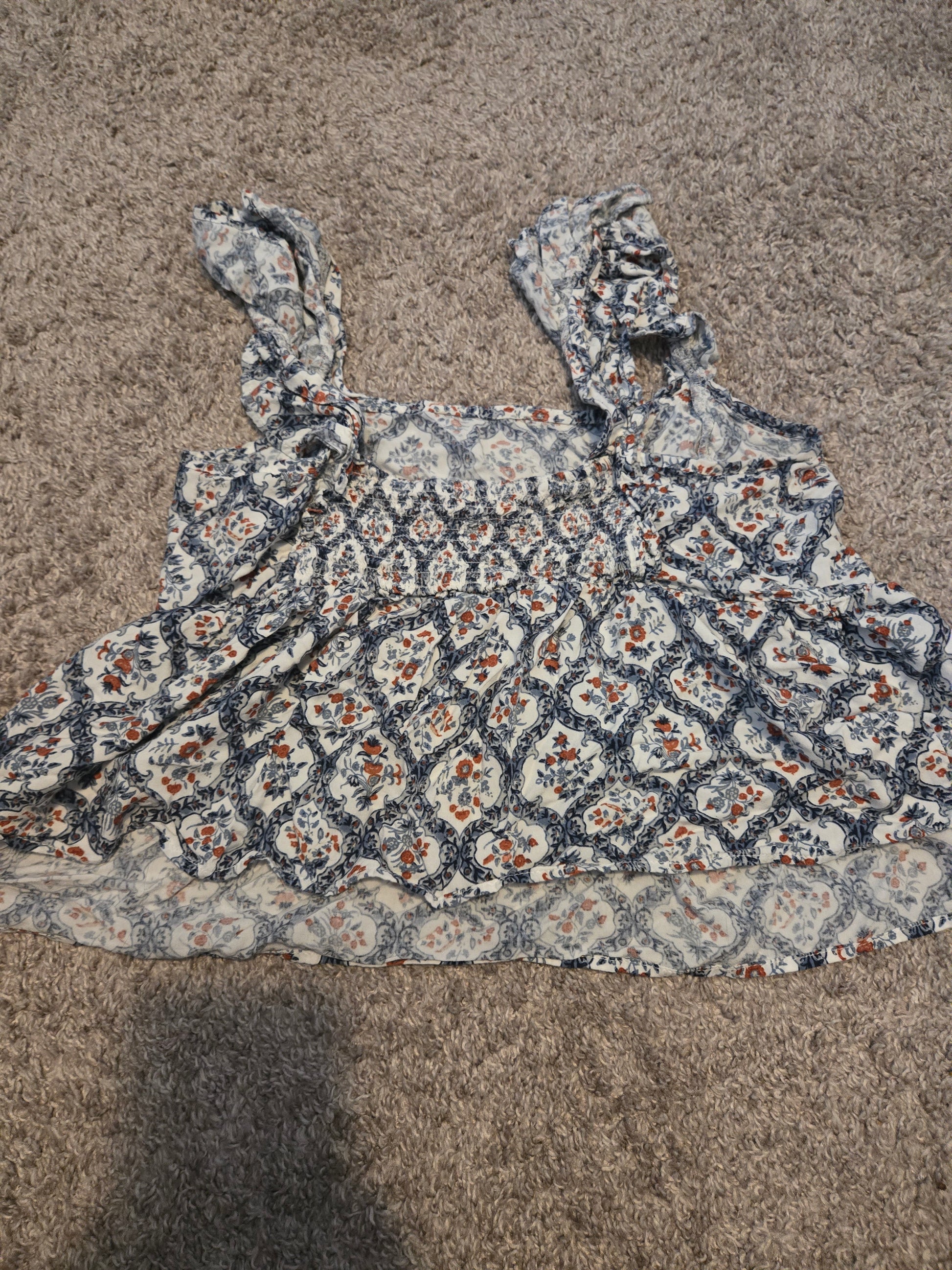 "Be a wallflower in style with this floral print crop top. Made with soft and lightweight polyester/rayon material, it's comfortably gentle on skin. This gently used crop top comes in size L, and is machine washable for easy care. Perfect for any casual occasion, it's the ideal blend of fashion and comfort. (Wall)flower power!"
