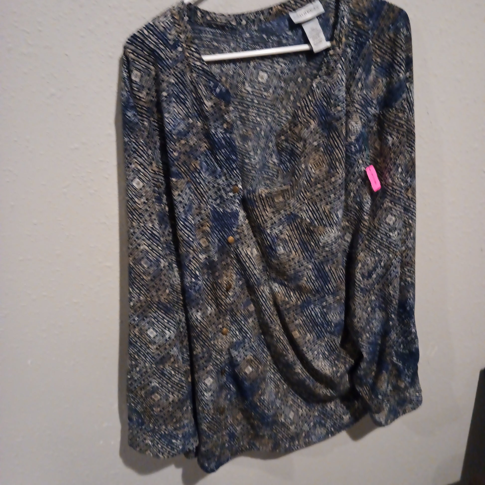 Catherines Blue and Brown Long Sleeve Button Up Blouse - Gently Used